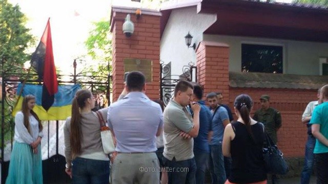По данным СМИ, пикетчики повесили на ограду российской дипмиссии флаг Украины, а также заявили, что намерены отлавливать жителей Львова, которых пригласили на мероприятие.