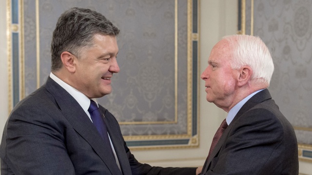 ![]() Пётр Порошенко встретился с делегацией сенаторов США во главе с Джоном Маккейном и поблагодарил американских парламентариев за поддержку Украины. По словам украинского президента, из-за океана идет не только финансовая и экономическая помощь.