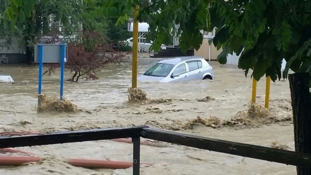 В Сочи утром выпало 100 мм осадков при норме 130 мм в месяц. В городе сейчас не работают аэропорт и железнодорожный вокзал. Городские улицы и магистрали превратились в бурные реки.