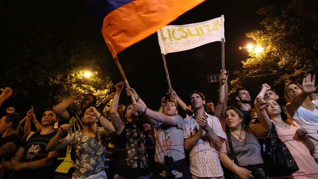 Ночью представитель полиции в громкоговоритель предупредил митингующих о том, что собрание незаконно, а громкая речь и свист мешают жителям близлежащих домов. Некоторые участники вступили в диалог с заместителем начальника полиции Еревана полковником Валерием Осипяном, сообщает «Интерфакс».