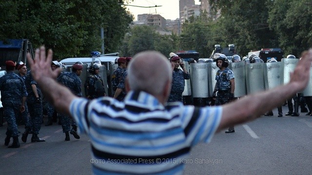 В Ереване полиция пытается отбить у демонстрантов мусорные контейнеры