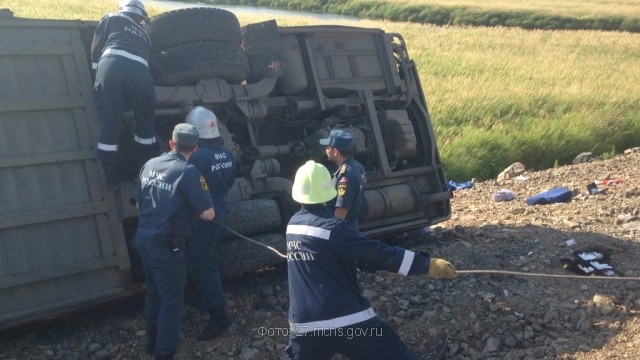 Крупное ДТП произошло накануне утром в Хабаровском крае. Около 8:20 по московскому времени на 144-м километре дороги Хабаровск Комсомольск-на-Амуре лоб в лоб столкнулись два рейсовых автобуса. Возможной причиной ДТП стал выезд одного из шоферов на встречную полосу для обгона. Источник
