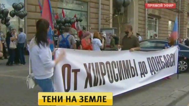 ![]() У здания посольства США в Москве проходит пикет против внешней политики Соединенных Штатов. Организатором выступил «Союз политэмигрантов и политзаключенных Украины». Участники держат флаги ДНР и ЛНР, а также черные шары в память жертвах конфликта. |