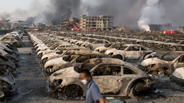 В разрушенном Тяньцзине вновь взрываются и горят машины