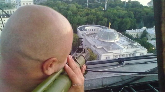 ![]() На снимке запечатлен мужчина, который из окна отеля «Киев» целится из гранатомета в здание Верховной рады. Кто изображен на фото и кто делал снимок неизвестно, но в милиции очень хотят это узнать. |
