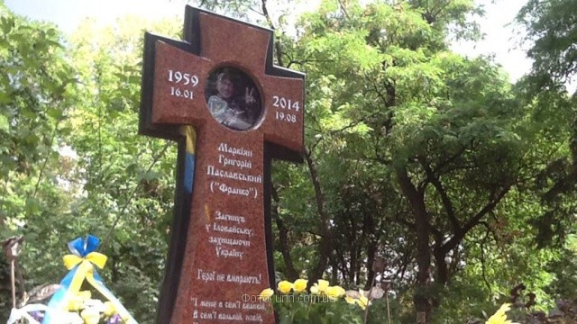 ![]() Памятник Паславскому установили в парковом комплексе «Аскольдова могила», где ранее он был похоронен. |