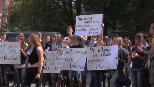 Жители Луганска устроили пикет у офиса Красного Креста