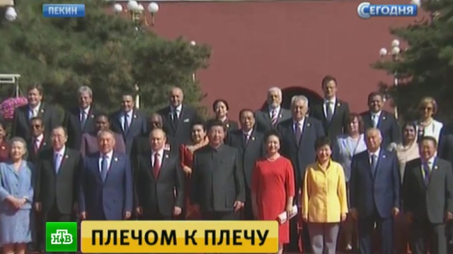 Российского президента, как и других гостей, китайский лидер Си Цзиньпин с супругой встретил возле Императорского дворца. Перед началом военного парада на площади Тяньаньмэнь Путин принял участие в церемонии фотографирования глав иностранных делегаций.