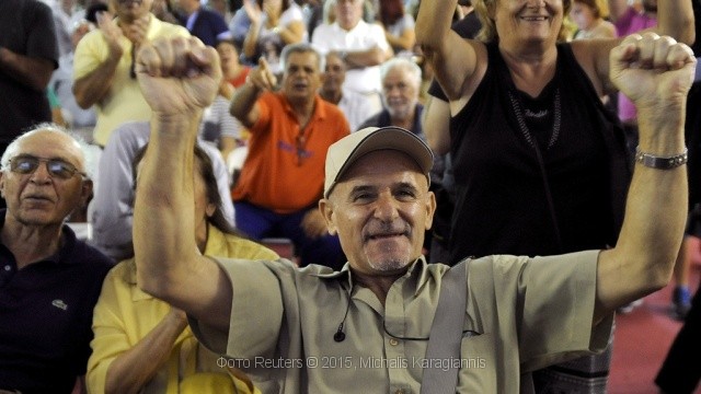 Сторонники партии СИРИЗА празднуют победу на выборах в центре Афин
