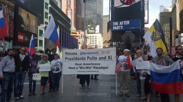 Real Americans welcome Presidents Putin and Xi to New York for the UNGA today pic.twitter.com/gBfhXW1NXp Navstéva (@Navsteva) 26 сентября 2015