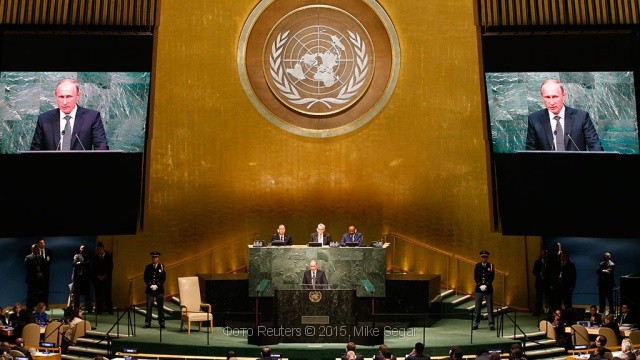 Владимир Путин, выступая на 70-й сессии Генассамблеи ООН, предложил обсудить резолюцию о координации всех сил, борющихся против «Исламского государства».