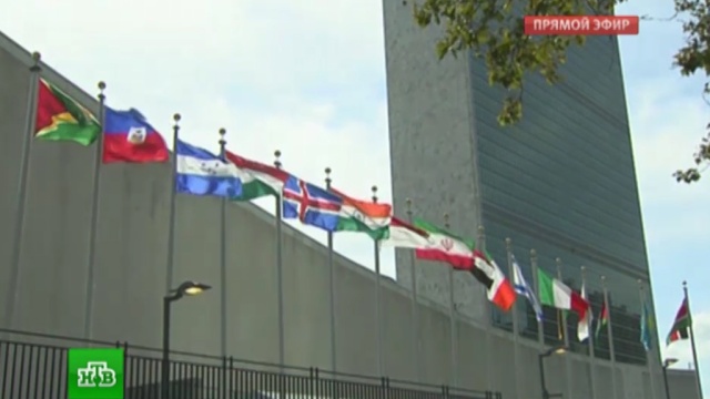 А около трех часов назад Владимир Путин и Барак Обама приняли участие в официальном обеде в честь глав государств. Лидеры двух стран сидели по обе стороны от генерального секретаря организации Пан Ги Муна. Подавали всем розовое игристое вино: Путин и Обама вместе подняли бокалы. Российский президент во время обеда ненадолго отвлекся на телефонный звонок. - Владимир Путин и Барак Обама начали переговоры в штаб-квартире ООН