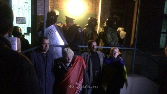 Протестующие говорят, что не допустят того, чтобы бюллетени покинули типографию. Милиция останавливает штурмующих с помощью щитов, не давая им пробиться внутрь.