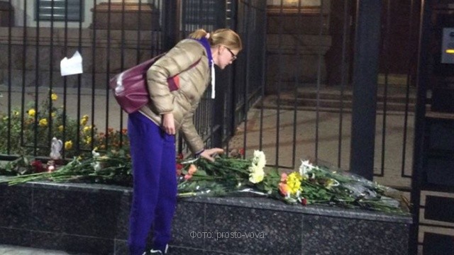 У посольства РФ в Киеве появились цветы и зажженные лампады