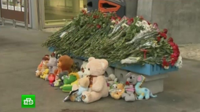 Петербуржцы продолжают нести к аэропорту цветы и плюшевые игрушки символ того, что погибли 27 детей.