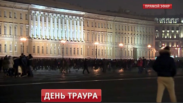 Тем временем люди несут на Дворцовую площадь цветы, свечи и детские игрушки. Все это началось стихийно, но чуть позже городские власти поддержали эту инициативу. Конечно, на Дворцовой сейчас скорбят не только петербуржцы, но и множество гостей города.