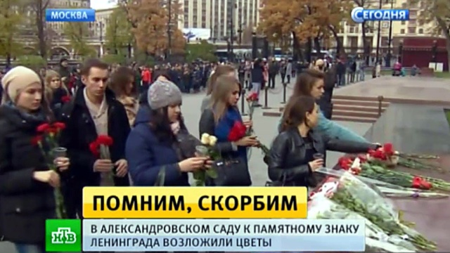 Москвичи несут цветы к Кремлю в память о жертвах крушения A321