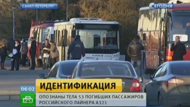 Все члены экипажа российского пассажирского самолета авиалайнера A321, разбившегося на Синае, опознаны. Установлены личности 53 погибших. Идентификация тел родственниками может завершиться уже сегодня, затем начнется долгая процедура генетической экспертизы. Она может растянуться на месяцы. Сейчас власти готовятся выдать опознанные тела родственникам.